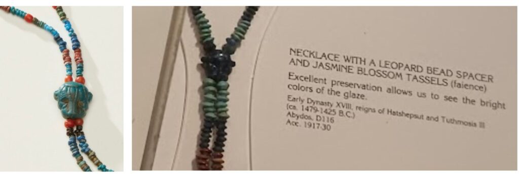 Jon says the necklace is fashioned after one from the Carnegie Museum in Pittsburg. The following image of a necklace from the Carnegie Museum was shared on the MW Discord. The designs are very much alike.   Each have a Leopard bead with ending tassels.