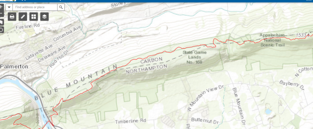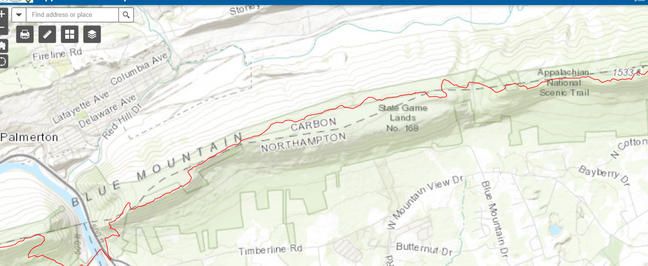 - High Point is faintly seen on the map. The Trail travels through High Point State Park in NJ