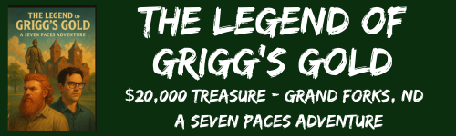 Seven Paces Treasure Hunts are created by two business owners from Grand Forks, North Dakota – Matt and Justin. Currently they have two treasure hunts in progress. One located in Vermont with a treasure value of $2500 and one located in Grand Forks with a treasure value of $20,000! (UPDATE 11/7/25 FOUND)