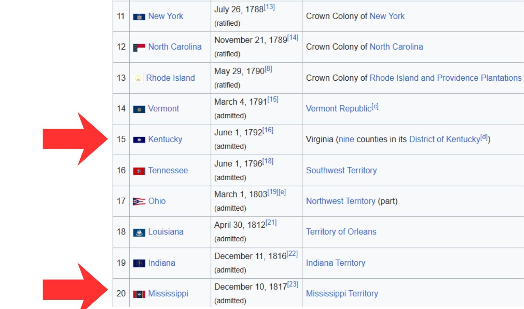 I’ve been discovering that Jon may be using the numbers that states were admitted into the union. TN was 16th. And while that is between 15 X 20 – there is more. What states are 15 and 20? They are Kentucky and Mississippi.