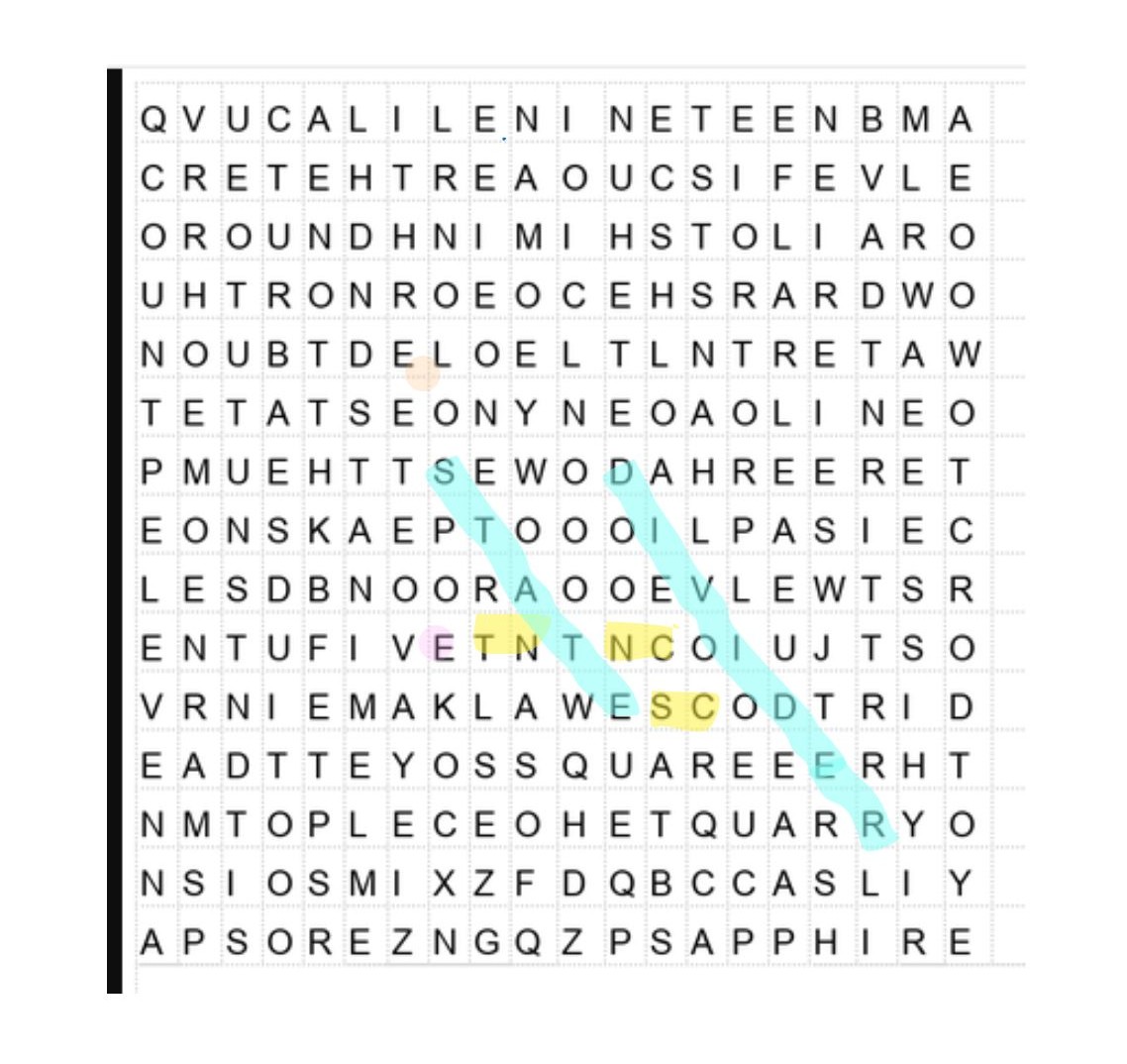 While possible – what could be the 5 clues in this word search? Those mentioned in the Secret Message? I feel they could be TN, NC, SC, STATE and DIVIDER. After words are found and the Secret Message is discovered – the three state abbreviations of TN, NC, SC are realized. They stick out from the remaining letters. STATE and DIVIDER are nearby and could mean the Smoky Mountains.
